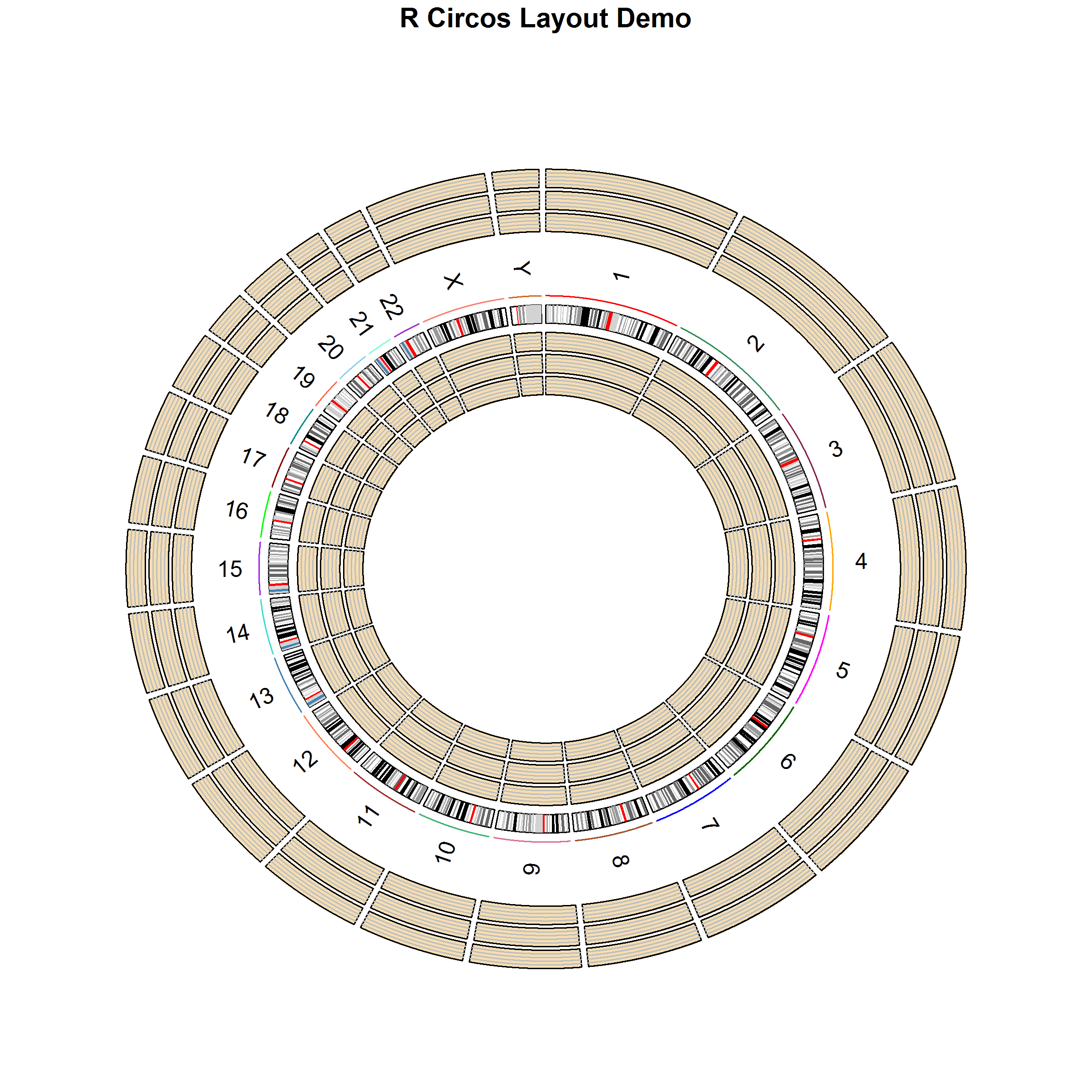 RCircos follows the same algorithm of Circos plot and arranges data plots in tracks. A track could be placed either inside or outside of chromosome ideogram and the detailed position for a track could be easily manipulated by changing of the track width and track numbers.